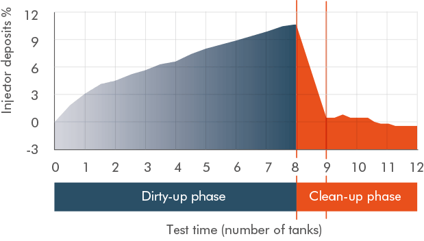 The solution is to use specifically designed deposit control additives to remove injector deposits and prevent injector fouling, dramatically reducing particle emissions and increasing fuel efficiency. This also preserves engine power and maintains optimum reliability. New industry tests carried out in our state-of-the-art laboratories using the industry standard Volkswagen EA 111 engine shows Dynamico delivers best-in-class performance when clean-up recovery is measured in a real-world driving simulation.